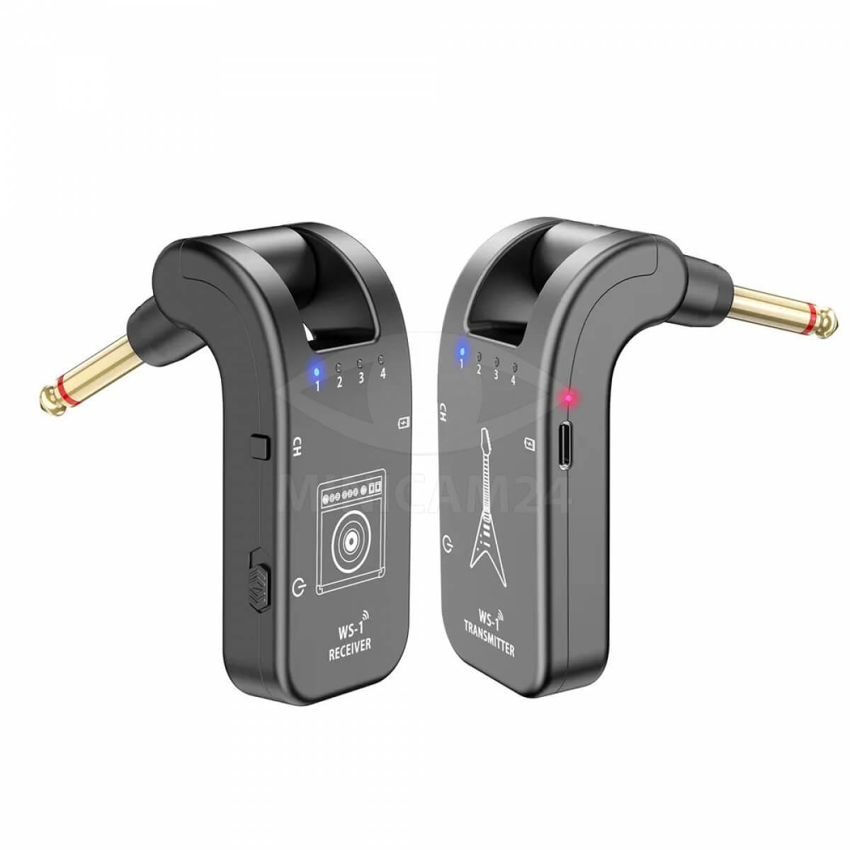 Беспроводная гитарная система (приемник/передатчик) WS-1 Black bluetooth обеспечивает высокое качество передачи звука и простоту настройки. Цифровая гитарная система для электрогитары на аккумуляторе имеет защиту от помех, поэтому качество звучания останется на высочайшем уровне. Аккумуляторный перезаряжамый блютуз передатчик звука обеспечивает передачу в радиусе до 30 метров на открытой местности и до 15 внутри помещений без использования проводов и дополнительных систем. Приемник может использоваться совместно с 4 устройствами на разных каналах, а передатчик может отправлять сигнал на несколько приемников. Аудиопередатчик имеет небольшие размеры, поэтому его удобно брать с собой. На корпусе расположена управляющая панель и порт для подключения адаптера питания.